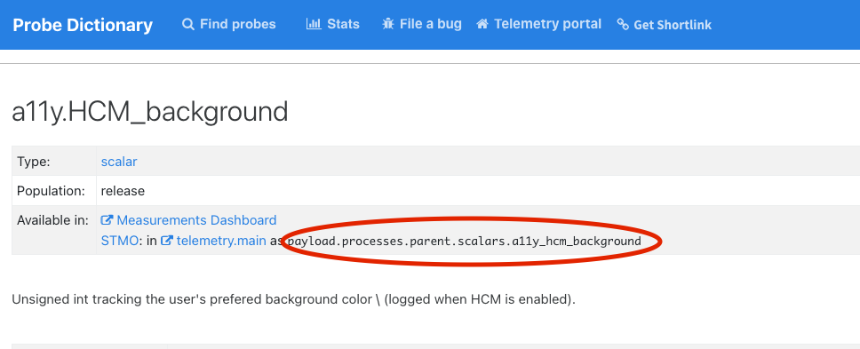 Inside Firefox, most Telemetry is collected via a module called "Telemetry". The details of our ping formats is extensively documented in the Firefox Source Docs under Toolkit/Telemetry.