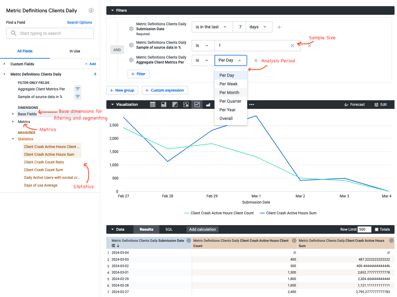 Both the ping and derived datasets are viewable using tools like GLAM and Looker. For more information, see Tools for Data Analysis.